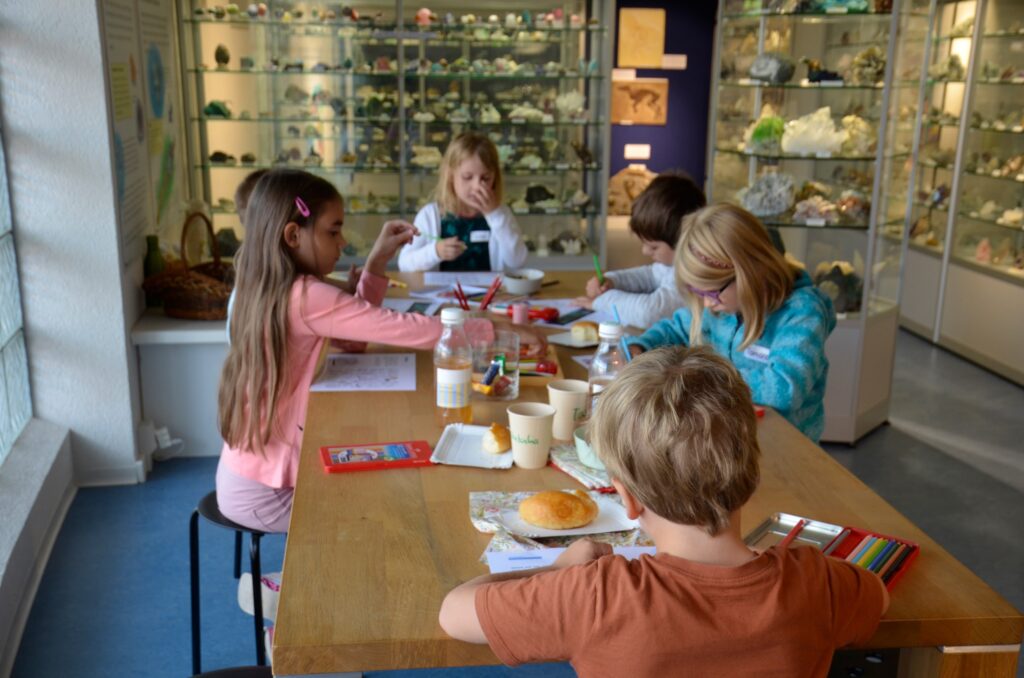 Kinder der 1. Klasse bis zur 5. Klasse haben sich angemeldet um die Vielfalt von Mineralien, Fossilien und Meteoriten kennenzulernen.