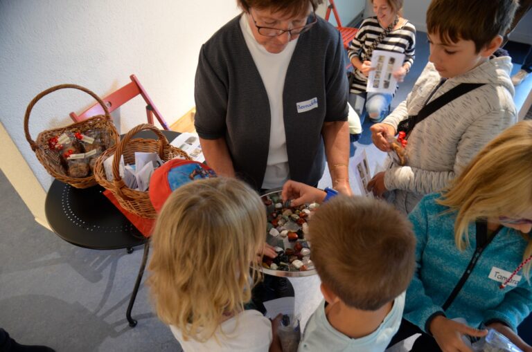 Und zum Schluss konnten die Kinder sich einen kleinen Stein als Andenken aussuchen und ein Einsiedler Biberli mit nach Hause nehmen.